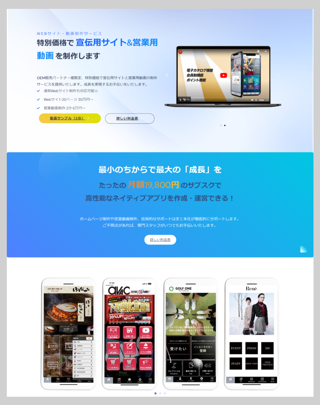 | 10ページプラン | 20ページプラン | OEM販売パートナー限定 |